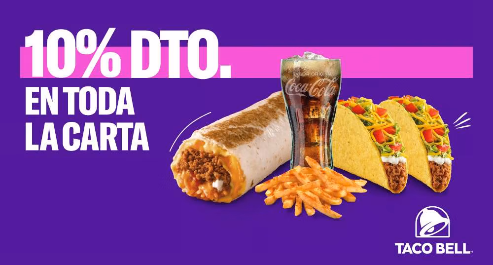 En Taco Bell podrás disfrutar desde entrantes para compartir, menús, productos individuales y postres. Tacos, burritos, quesadillas y crunchywraps hacen que nuestra oferta sea amplia y variada. Ah! Y no te olvides rellenar gratis las veces que quieras tu refresco.